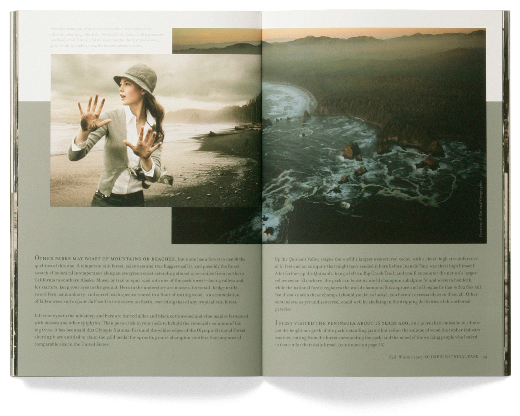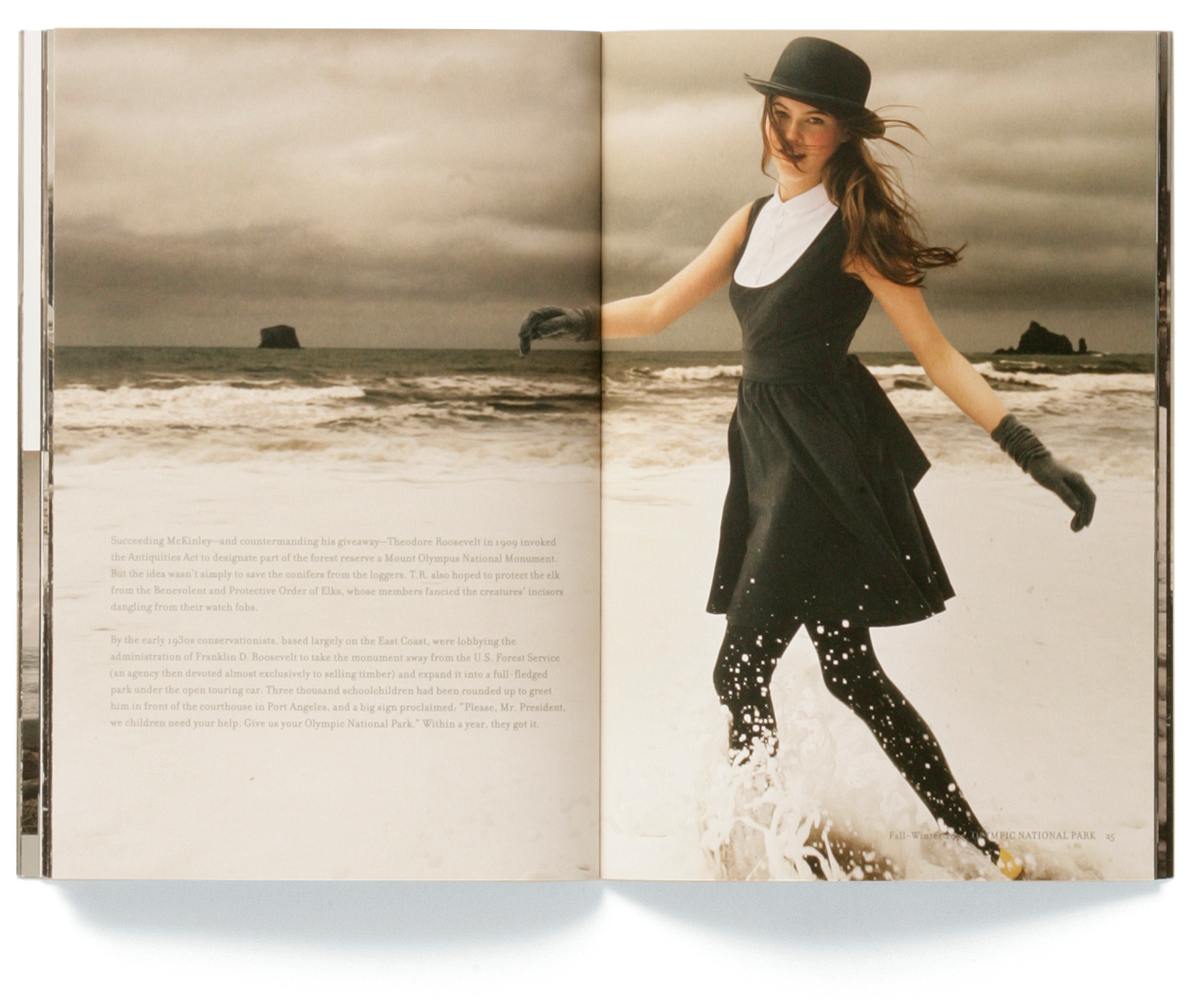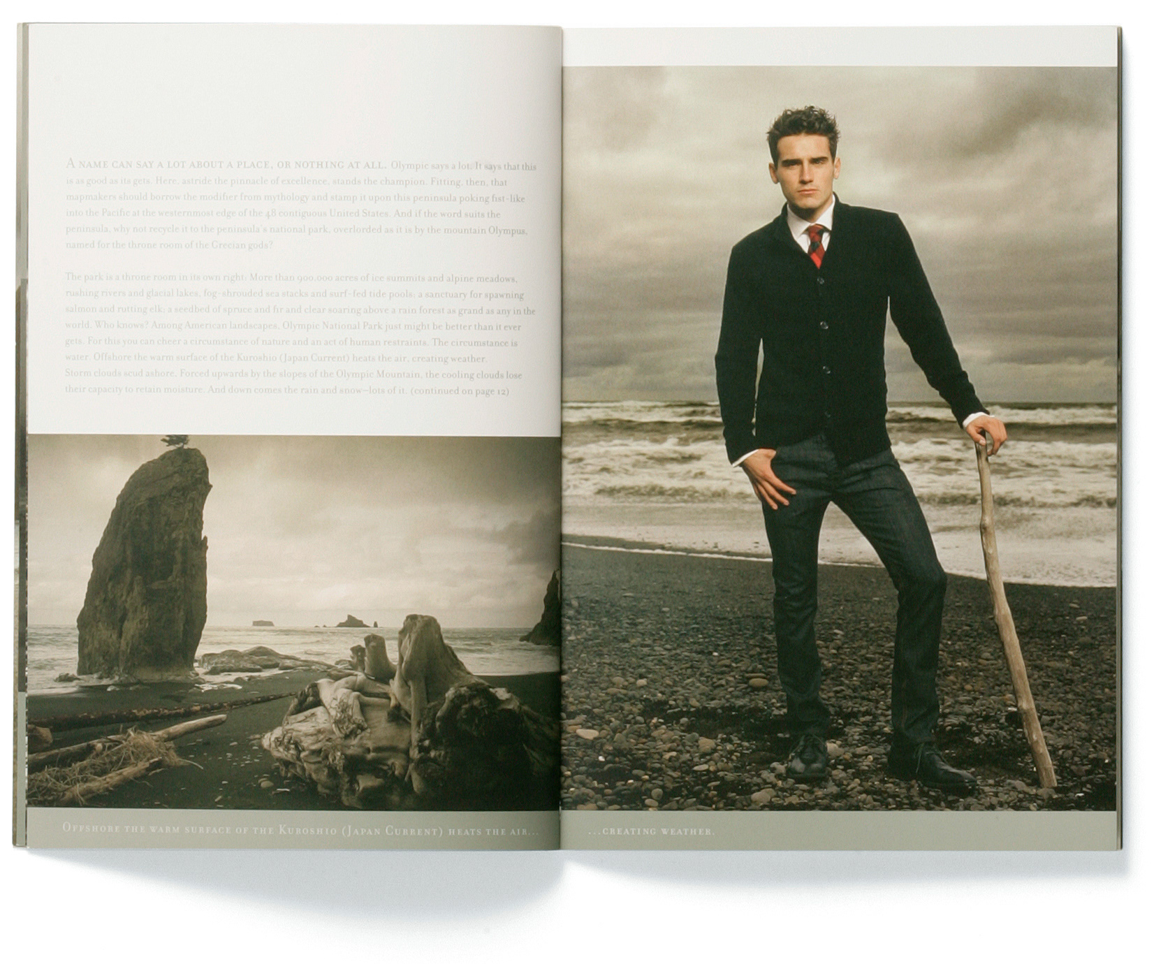 Tommy Hilfiger consumer brochure in cooperation with National Geographic Magazine. Shot in Olympic National Park in Washington State. Design: Marcel Bos