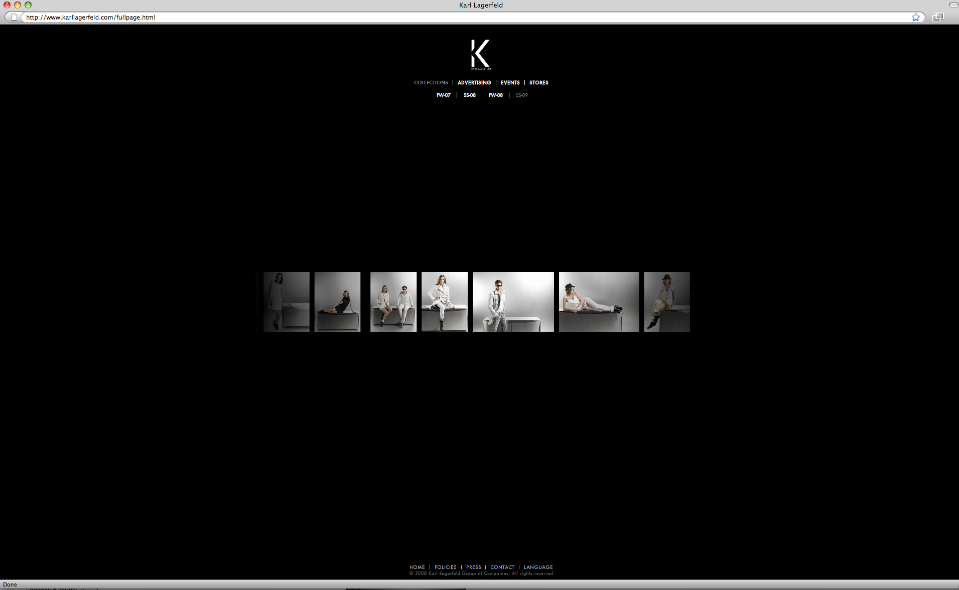 Multiple brand site to cover Mr Lagerfelds many brands, creations and ideas. Design and Art Direction: Marcel Bos and Jristian Limsico