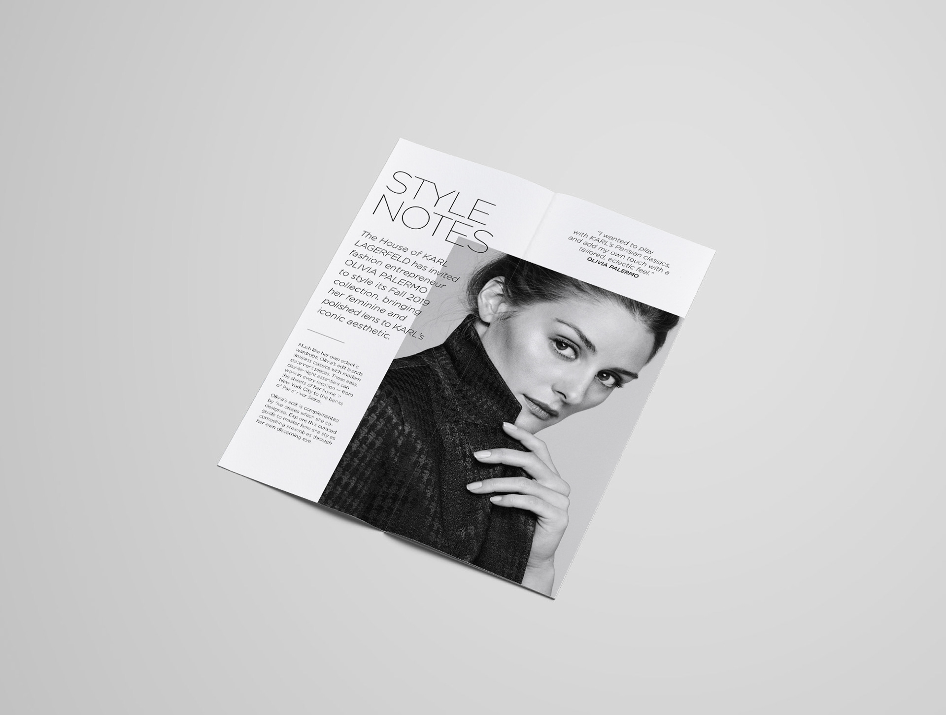 Hangtag and Style Guide to support the collaboration between Olivia Palermo and Maison Lagerfeld.