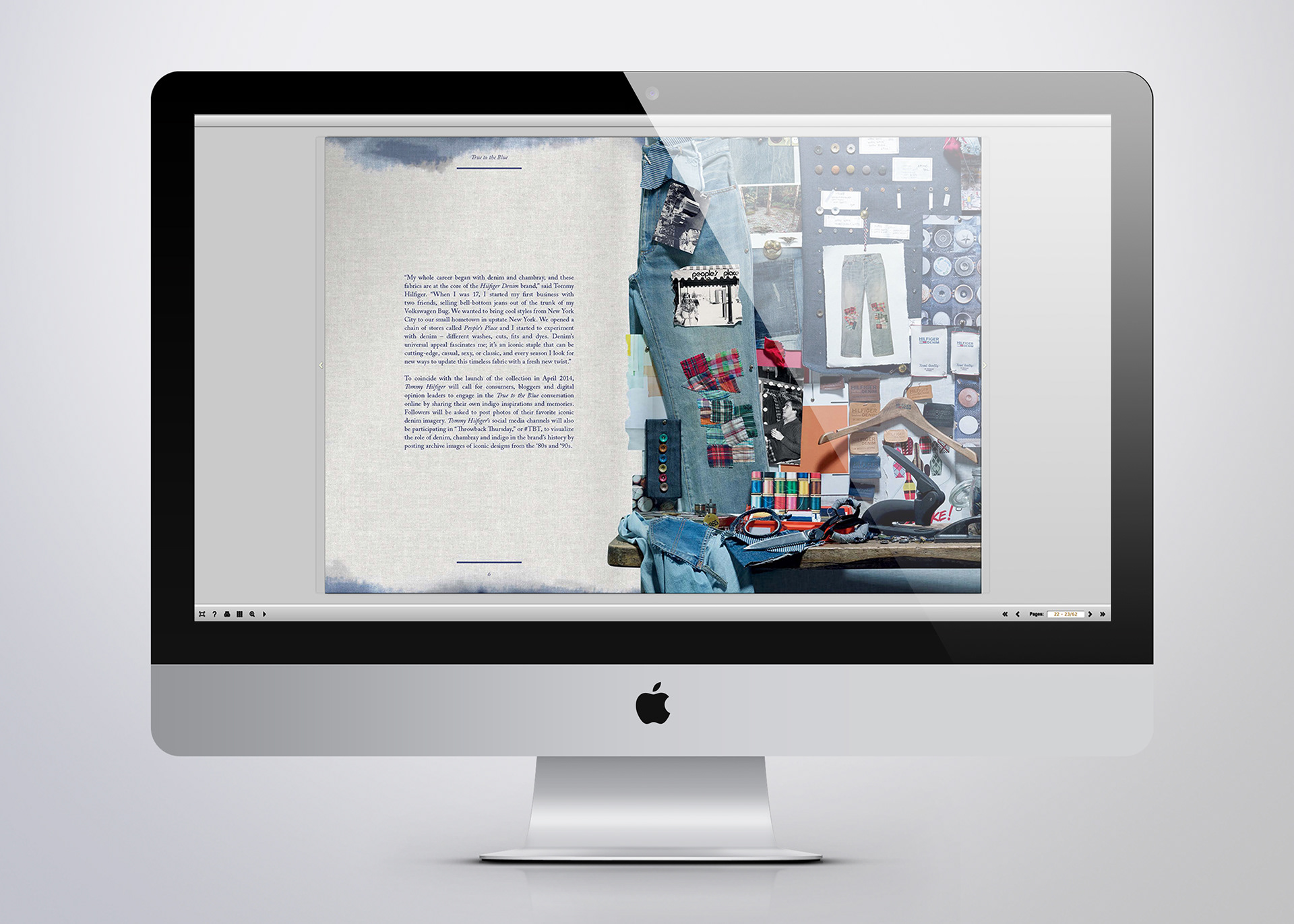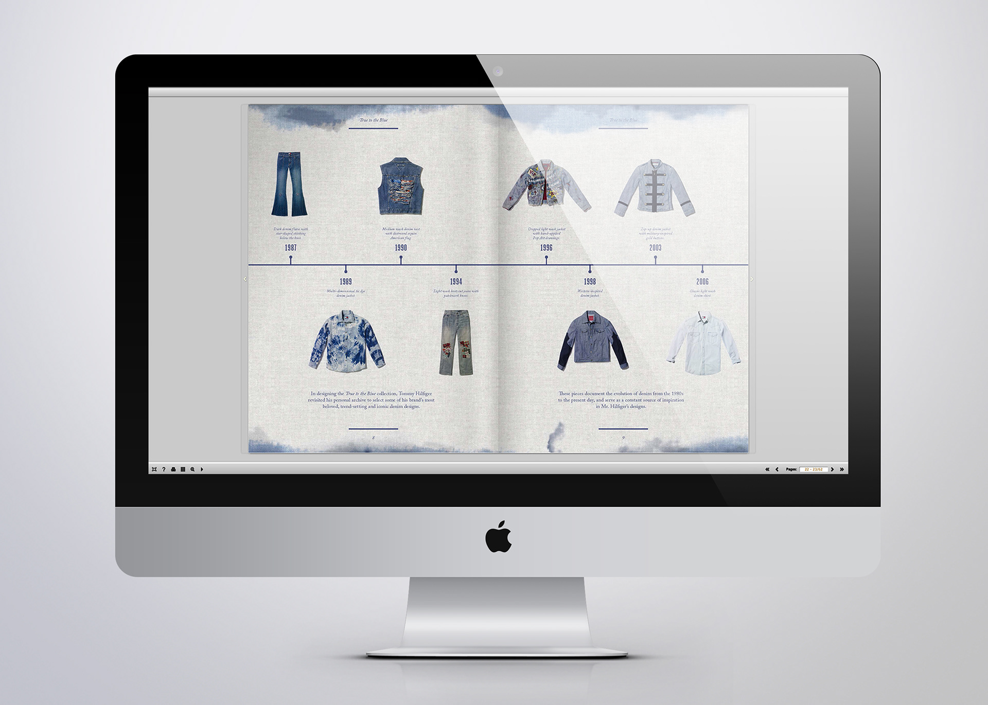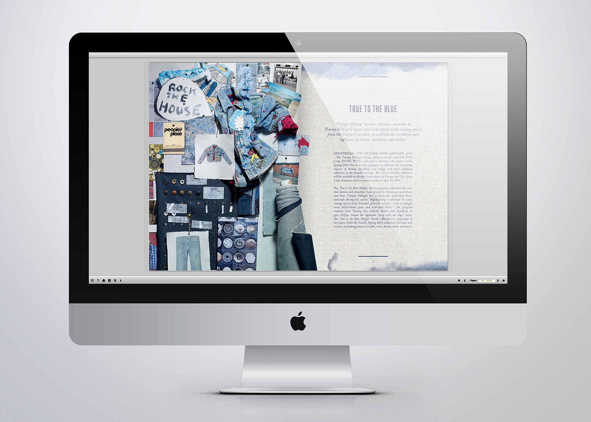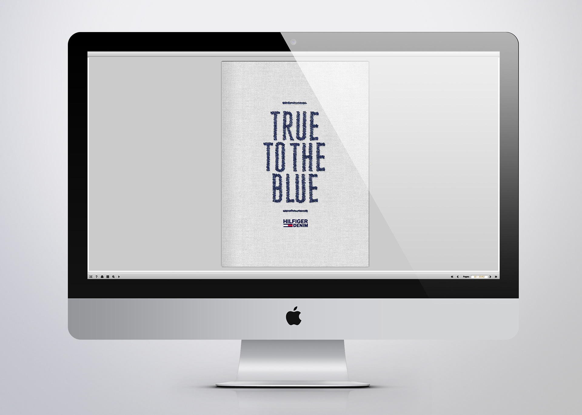 Hilfiger Denim True to the Blue Digital press kit, window and animation for online promotions, press and retail windows. True to the Blue is an all denim collection that celebrates this Iconic American product. In the design of the press-kit and the in-store animation we featured THD vintage pieces and pieces of the new collection to showcase a strong brand history. In the animation we made Hilfiger Denim vintage pieces transform into pieces of the new collection. Design and Art Direction: Marcel Bos Photography: Bart Oomes. Styling: Maarten Spruyt en Nanouk van Ramshorst